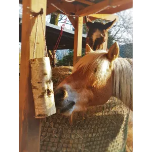 Super unkomplizierte Bestellung und Lieferung innerhalb des angegebenen Zeitraums. Das Holz ist frisch und sauber und lässt sich mit dem mitgelieferten Sisalseil und den Bohrungen einfach in der Box oder dem Paddock befestigen. Die Pferde haben es auch sofort gut angenommen und fleißig losgeknabbert.